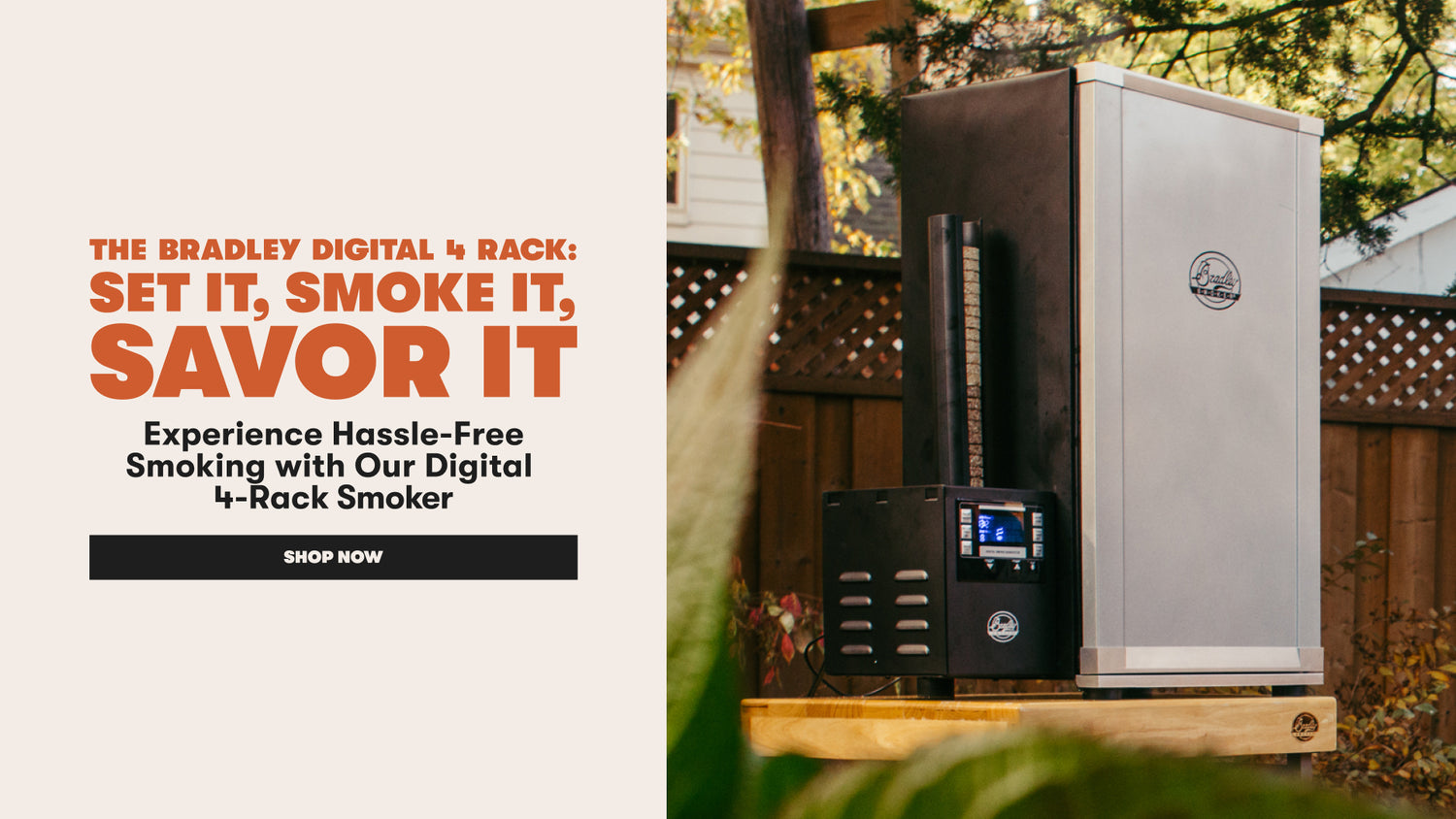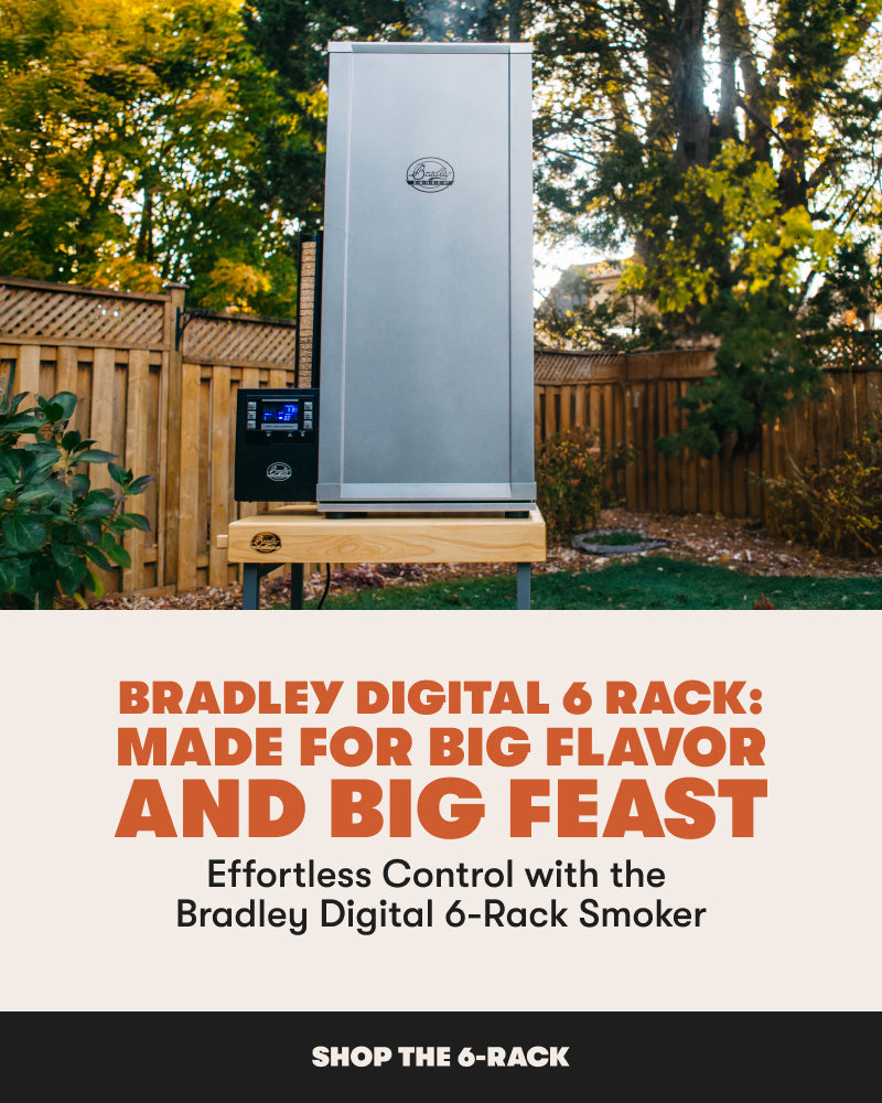 Food smoking isn’t all adrenaline and flame. Smoke says something beautiful’s in the air. Your food nurtured slowly over time by a method that’s timeless. The Bradley Smoker is a whole new generation of food smokers. Pick a recipe, a bisquette, and then set the time and temp. See how a Bradley Smoker so easily adds flavor to everything.